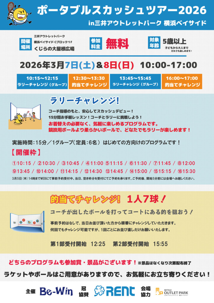 ポータブルスカッシュツアー2026 in 三井アウトレットパーク 横浜ベイサイドご案内